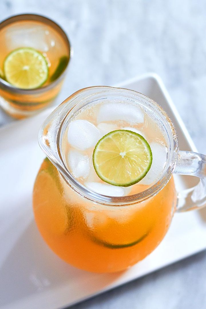 4. Before serving, pour the lemonade into a glass jug, add ice cubes and garnish with lemon slices and mint.
