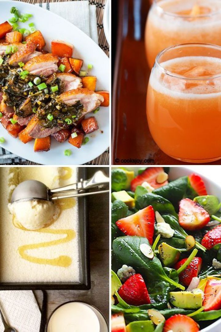 Crispy Duck Breast, Honey Ice Cream, Cantaloupe Smoothie, Avocado Strawberry Spinach Salad