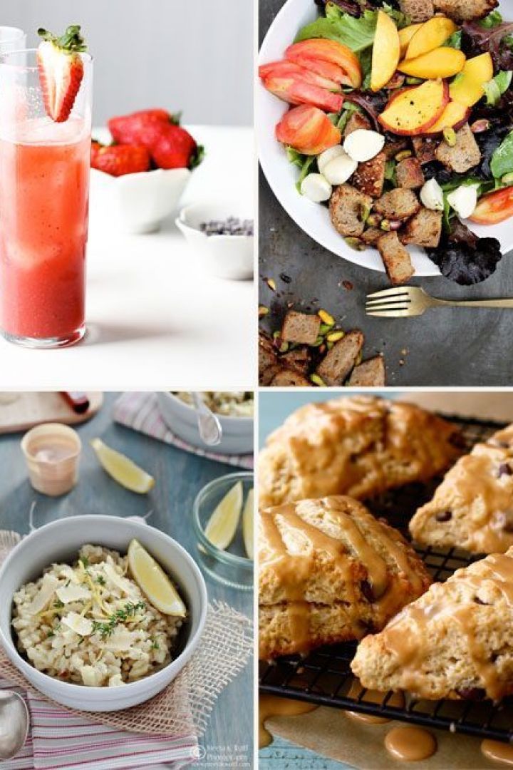 Strawberry Lavender Cocktail, Tomato and Peach Salad, Lemon Thyme and Fennel Risotto, Chocolate Chip Scones