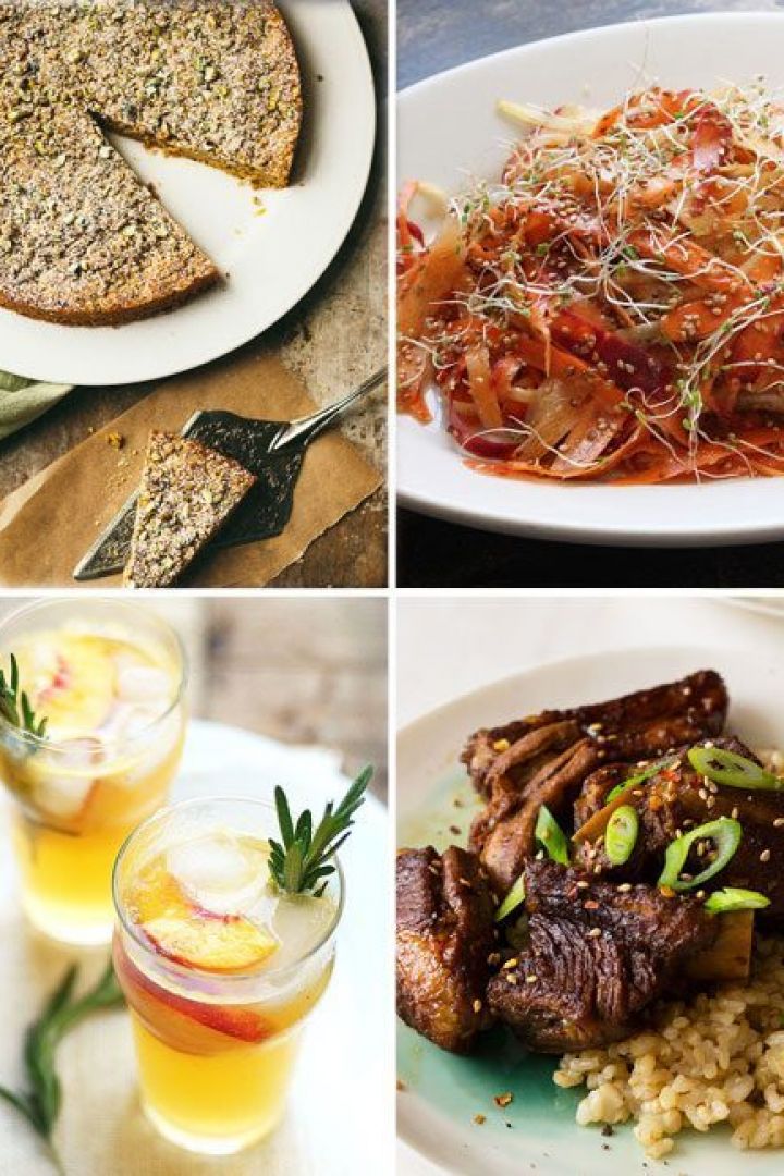 Pistachio Crumbly Cake, Shaved Carrot Salad, Cocktail The Shucks Deluxe, Honey Soy Braised Ribs