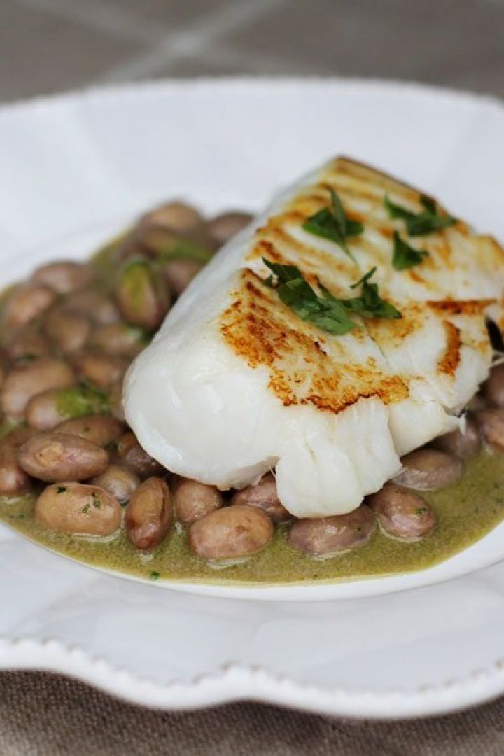 Pan Fried Cod Fish with Pesto & White Beans