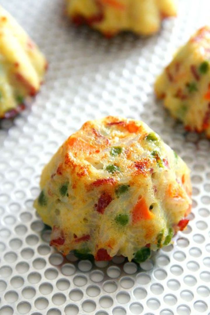 Mini Rice Cakes with Bacon, Vegetables and Cheese