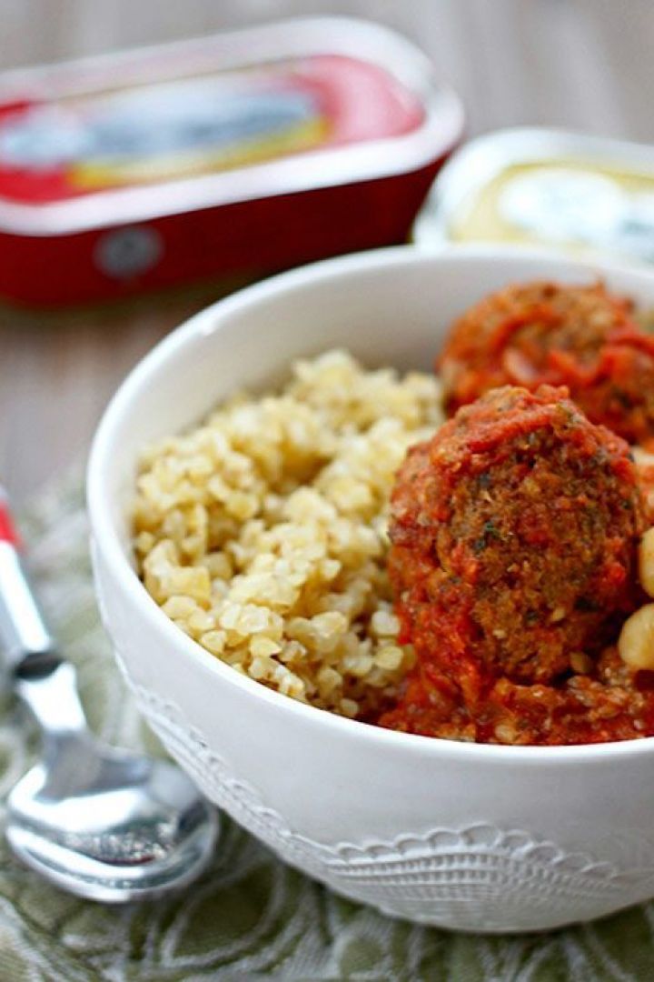 Sardine Balls in Tomato Sauce with Chickpeas & Bulgur