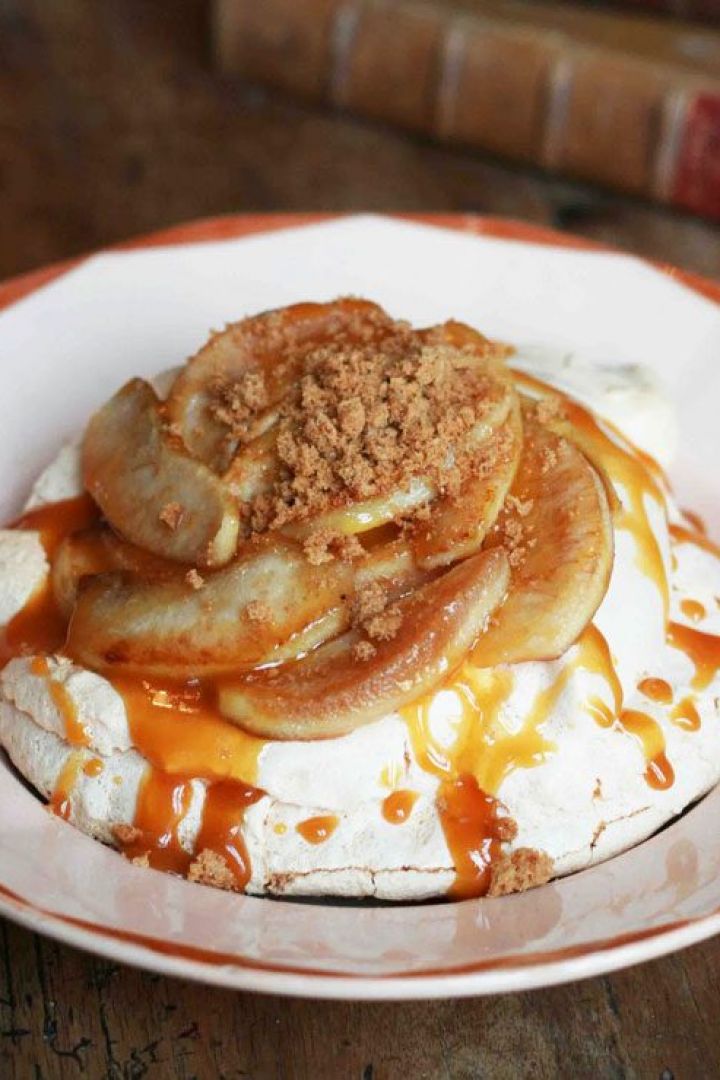 Pavlova with Pears & Salted Butter Caramel Sauce
