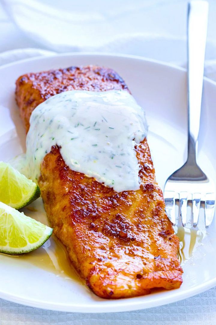 Spicy Sriracha-Glazed Salmon with Yogurt Sauce