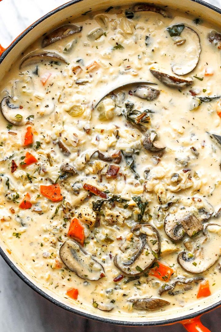 Crack Chicken wild Rice Soup with Mushroom and Bacon