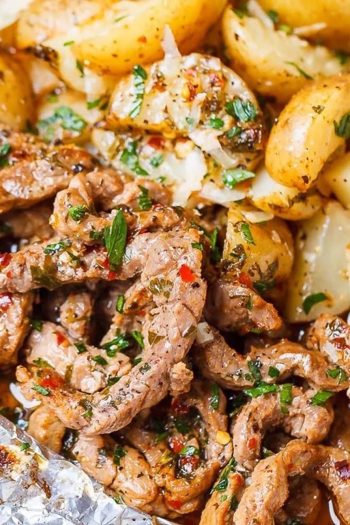 Garlic Butter Steak Bites with Lemon Zucchini Noodles