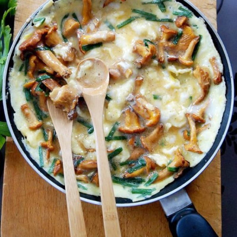 With a subtle flavor of Chanterelles mushrooms and chives This omelet is really easy to make. It takes less than 20 minutes to have it ready on your plate! (See the recipe)