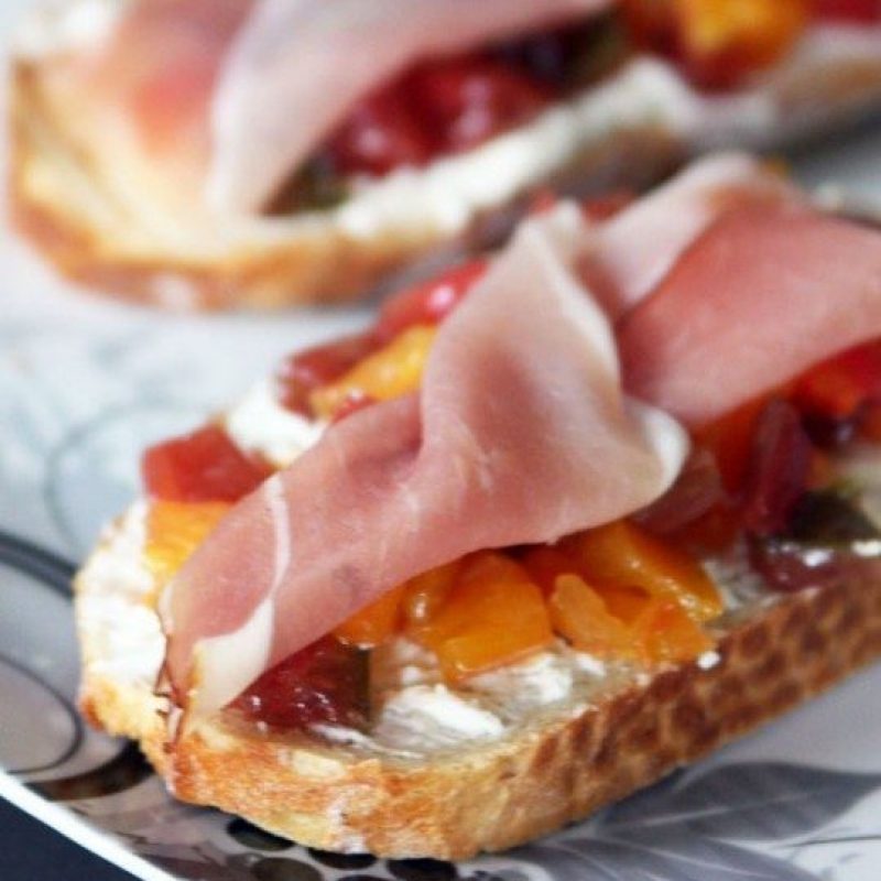 1. Tomato Bruschetta with Goat’s Cheese and Ham