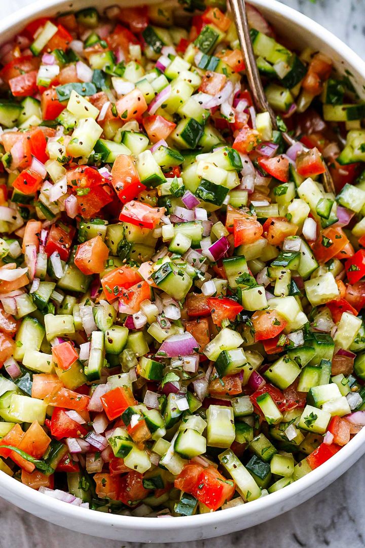 Mediterranean Salad with Cucumber, Tomato and Onion