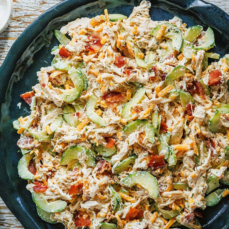 This ranch chicken salad is perfect for an easy lunch during the week, and it’s so easy to throw together! Made with rotisserie chicken meat, cucumber, and homemade ranch dressing, it can be served as is, on sandwiches, or on flatbreads. You’ll have the chicken salad on repeat in your meal plan. Enjoy!