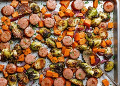 17. Sheet-Pan Maple-Glazed Chicken with Sweet Potatoes