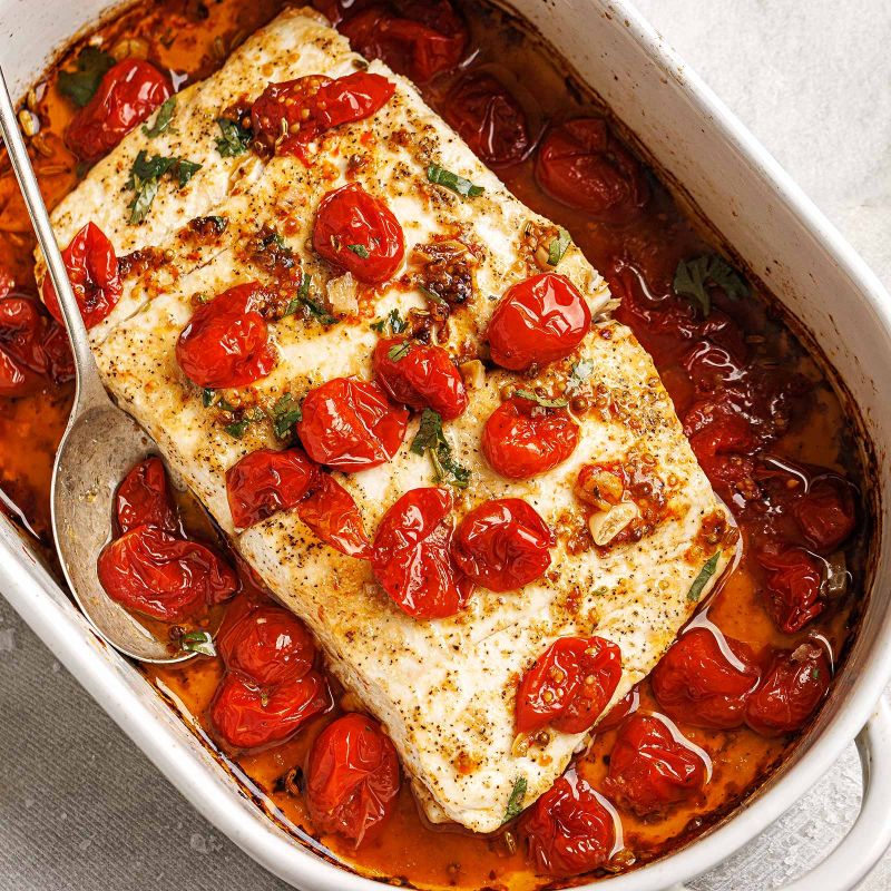 Get everyone happy with this baked halibut and grape tomatoes for dinner! Seasoned halibut fillets and juicy grape tomatoes are baked in the oven. This halibut recipe is super easy to prep from scratch. A quick and easy dinner the whole family will love. Enjoy!