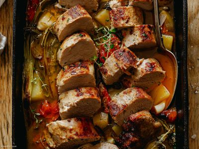 Baked Pork Tenderloin with Vegetables and Spiced Butter