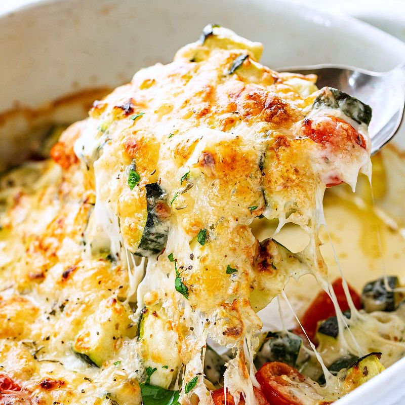 - We like the Mediterranean flair of this baked zucchini recipe, that’s why we use mozzarella. But feel free to use any cheese, or cheese blend you like!