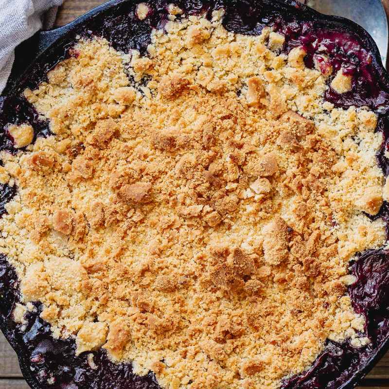 Vanilla bean ice cream or lightly sweetened whipped cream are great options for serving along with the triple berry cobbler skillet.