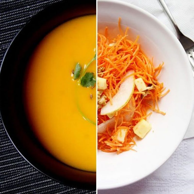 Certainly one of the most common of all root vegetables, carrots are cheap, easy to prepare, and available all year long! Carrots taste very good and they’re sweet; that is why kids love them. You can eat them raw, or cook them in any way you desire.Whatever kind of carrot variety you choose, organic carrots are way better. Supermarket carrot varieties cannot compare with organic specimens. You’ll be totally astonished at the flavor these orange veggies can bring to your dinner or lunch table. Not to mention all the healthy vitamins! So without further ado, here are our 10 favorite fresh carrot recipes to always have in your recipe pocket-book!
