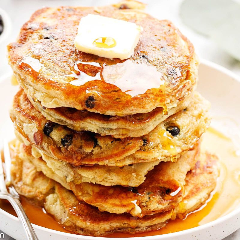 - Blueberries: Dried blueberries are great because they do not break down and add water to the pancake batter. Make sure to pick unsweetened dried blueberries. Fresh blueberries also work great.