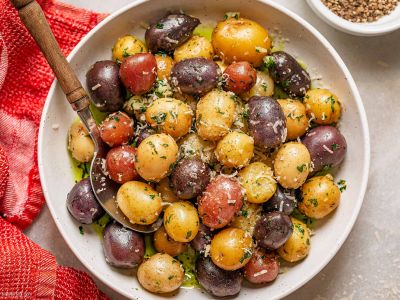 This potato recipe is an easy way to prepare baby potatoes. They are perfect for grilled meats, roasted chicken, and even roasted white fish such as cod or halibut. If you’re up for a steak dinner, try our garlic butter steak and potato skillet recipe. The mild flavor of new potatoes blends perfectly with brown butter, herbs, and garlic. This potato side dish recipe will prove particularly handy during the holiday season!