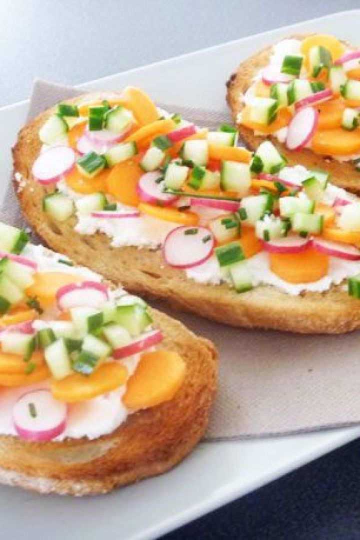 Bruschetta Toasted Bread with Cream Cheese and Crunchy Vegetables