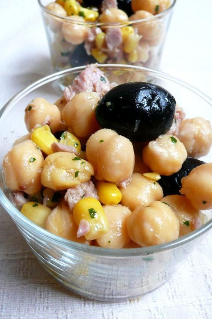 Lazy Chickpea Salad With Tuna, Corn & Black Olives
