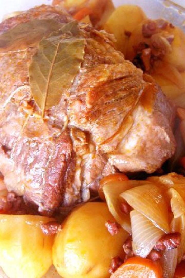 Roast Pork Stew with Bacon, Mustard, and Potatoes