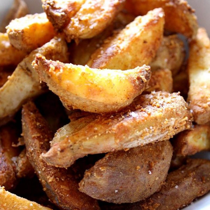 Have you ever dreamt about making better potato wedges than McDonald’s? Read on because at the good place! Our previous baked potatoes recipe had such a success that we decided to make a new version with a cheesy crust that reveal a tender and melting potato flesh. Here’s how to make these cheesy & spicy potato wedges, step by step:Ingredients list: cheesy spicy potato wedges