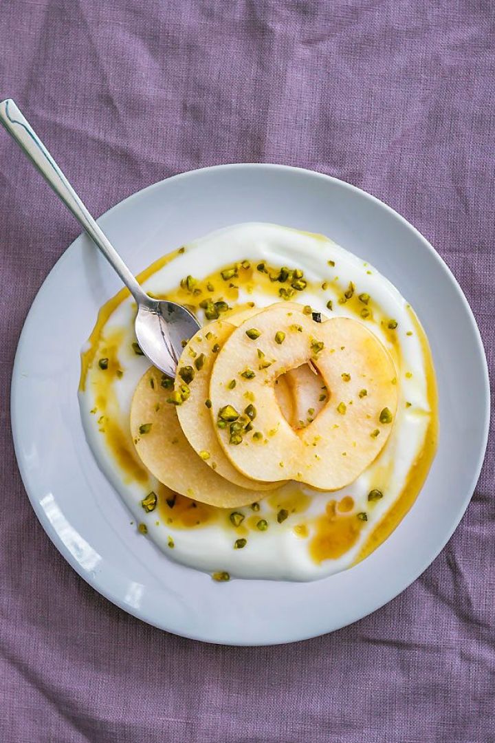 - Peel peaches, cut in half and remove cores, then detail each peach half into 6 districts. Book.