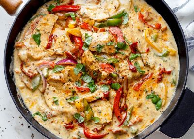 - Cut chicken breasts into small cubes. Then reheat in a pan (low heat) with olive oil. Salt and pepper to adjust the seasoning.