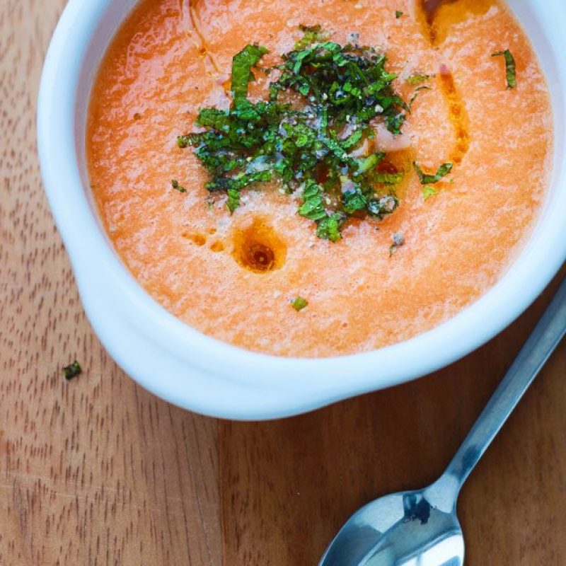 This chilled cantaloupe soup with mint on a hot summer evening makes a great first course or a refreshing main dish with a crisp salad and croutons. Enjoy this cold soup recipe!