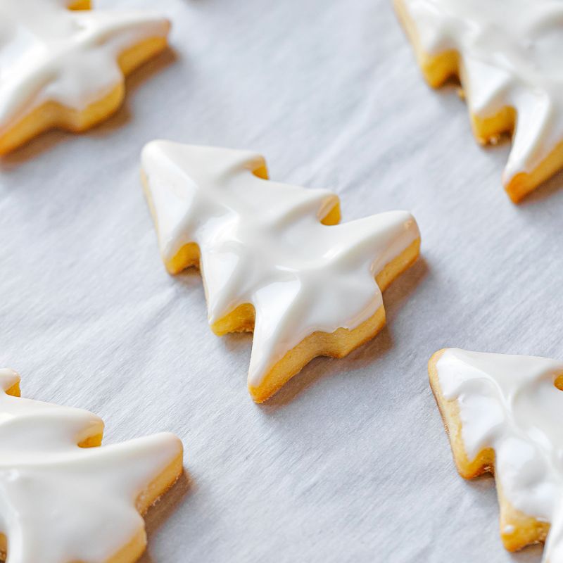 6. Preheat your oven to 350˚F (180ºC) when ready to bake. Remove the Christmas tree cookies from the refrigerator and bake for 12-16 minutes or until just beginning to turn golden at the edges. Cool completely on a wire rack.