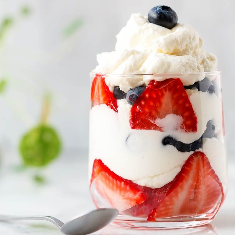2. Pipe or spoon the cream cheese mixture into individual cups and layer up with berries. Refrigerate until serving, or serve immediately. Enjoy!
