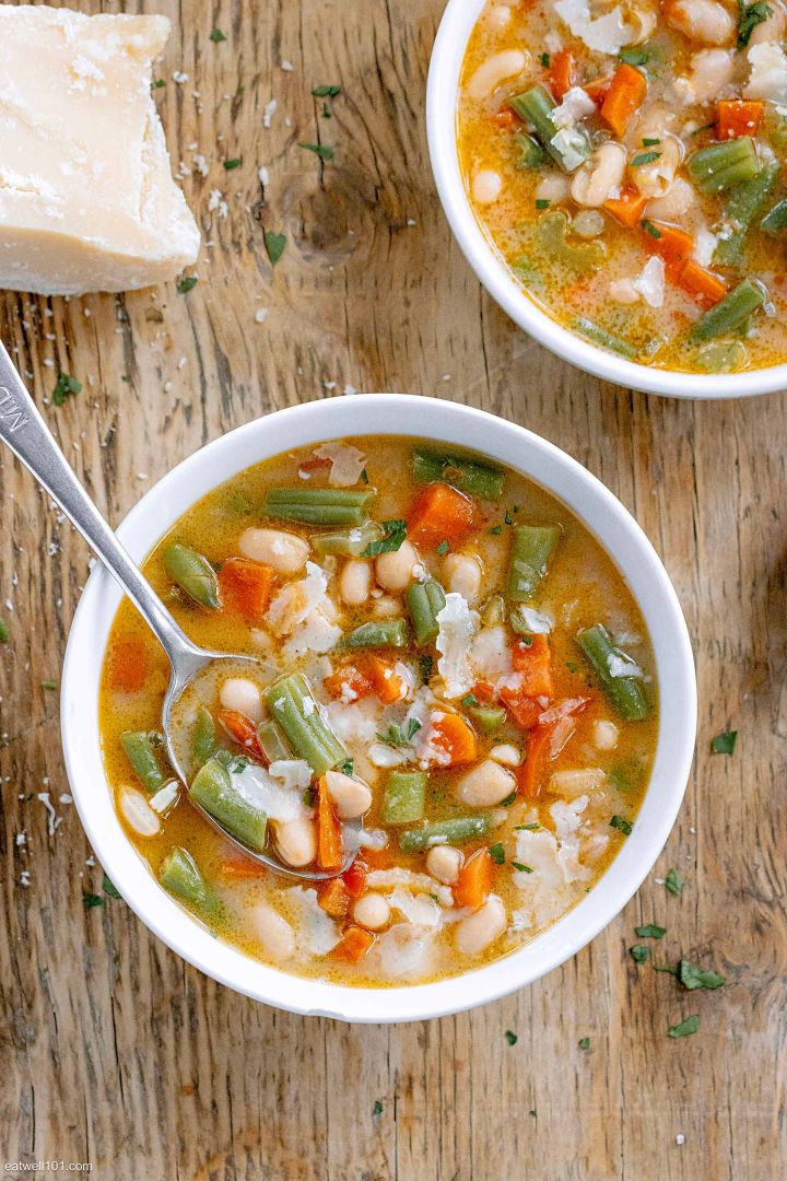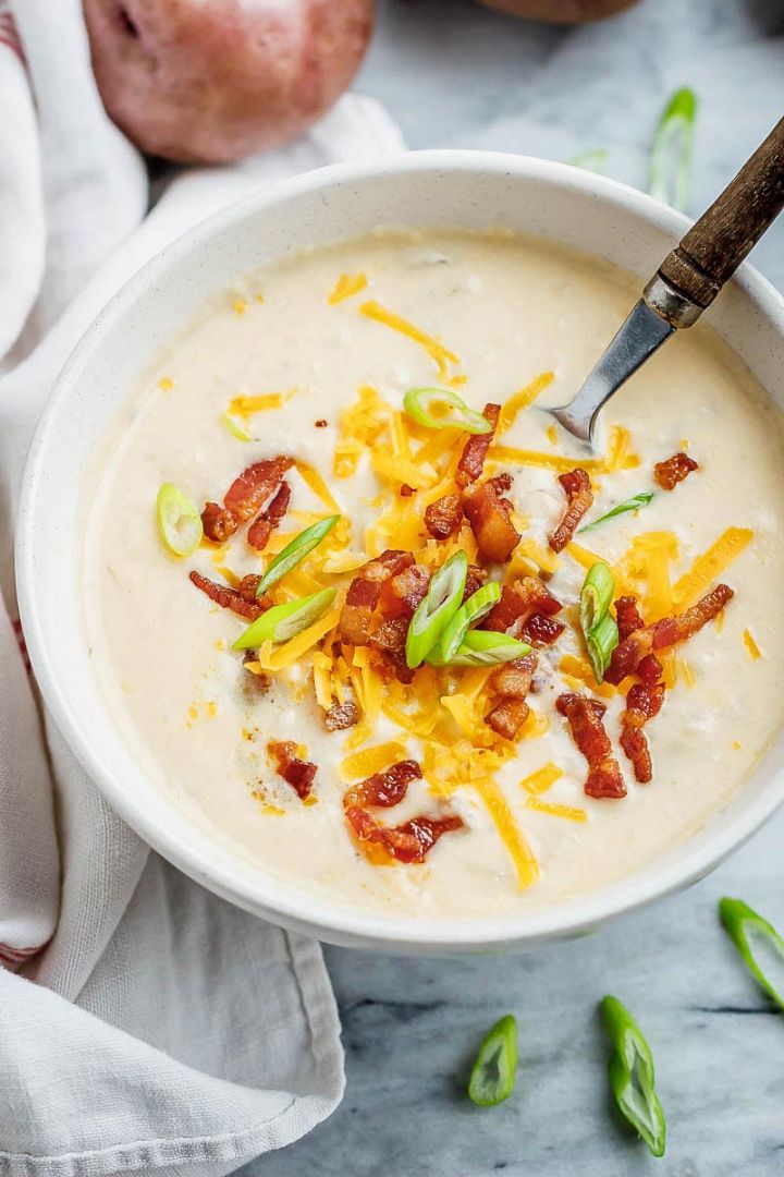Creamy Cauliflower Rice Chicken Soup – Loaded with healthy vegetables and hearty chicken, this creamy cauliflower rice chicken soup is the perfect hearty meal to warm you up. You’ll enjoy making this quick and easy meal no matter what the weather is, but we guarantee you’ll love it even more this Winter. Just grab a blanket and curl up with a cozy bowl!