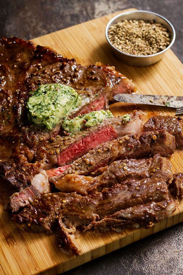 - Flank steak or ribeye steak, tenderloin, strip loin, strip steak…