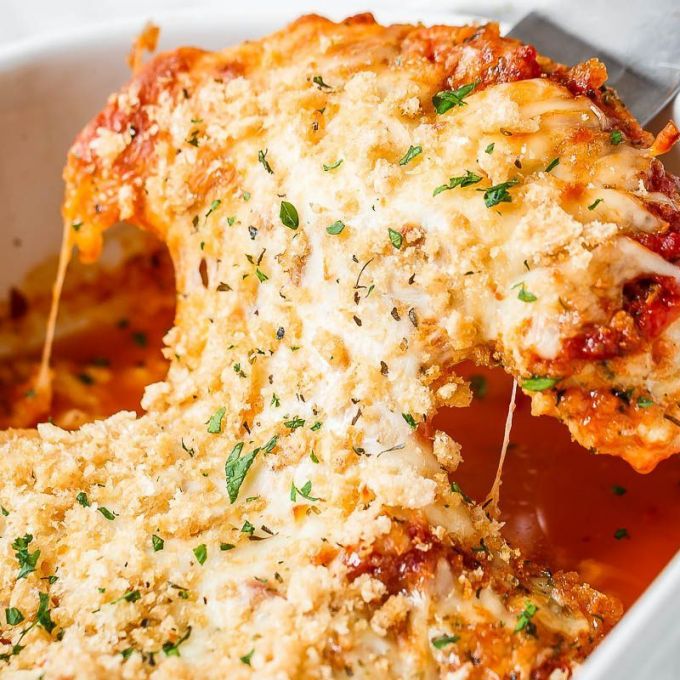 5. Adjust seasoning as needed. Return chicken thighs over cauliflower rice and reheat quickly. Serve with fresh cracked black pepper, red chili pepper flakes, fresh herbs and more parmesan if you want. Enjoy!