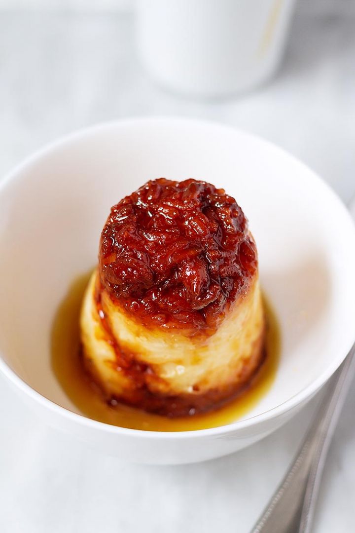 6. Meanwhile, prepare the orange syrup in a small saucepan over medium heat. Combine together orange juice and sugar until dissolved. Continue to cook for 3 minutes more and remove from heat.