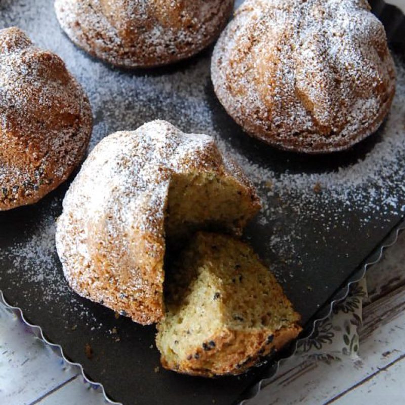 Sprinkle the rest of black sesame seeds and cook for 20 or even 25 min depending on size of molds.