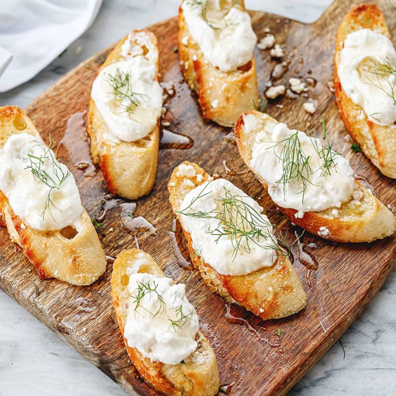 5. Serve the honey and goat cheese crostini immediately. Enjoy!