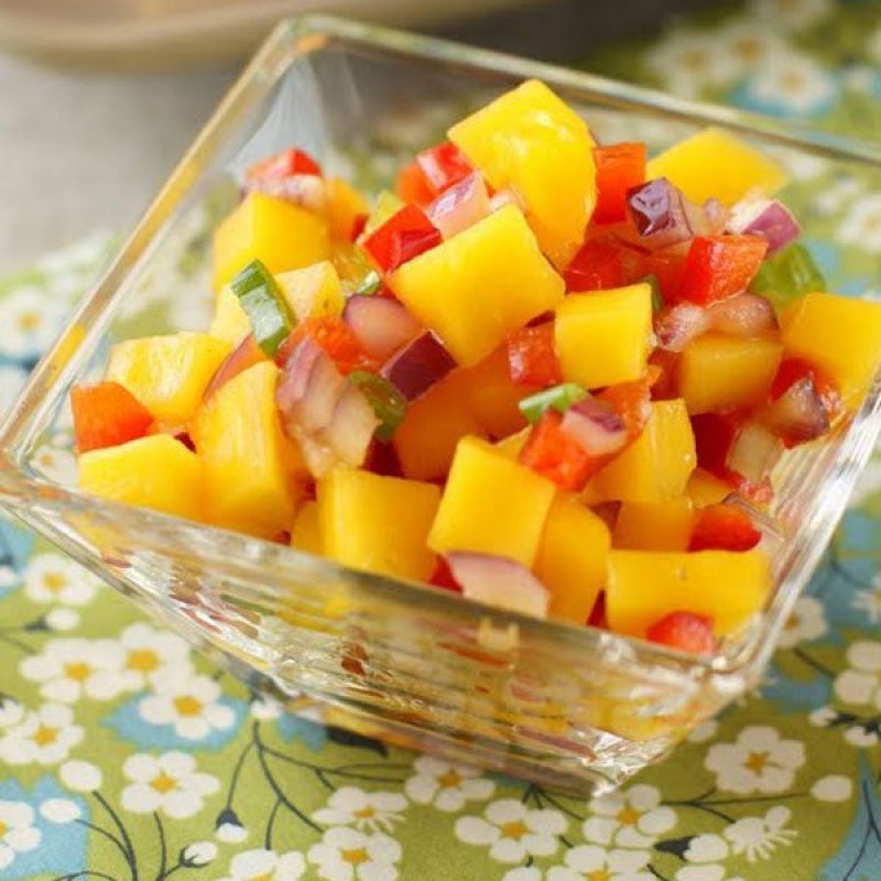 Are you looking for a fruity garnish for your grilled meat and fish? This fresh mango salsa is easy to make and will be perfect with chicken or salmon, or as the accompaniment in fish tacos.Prep time: 10 minutes