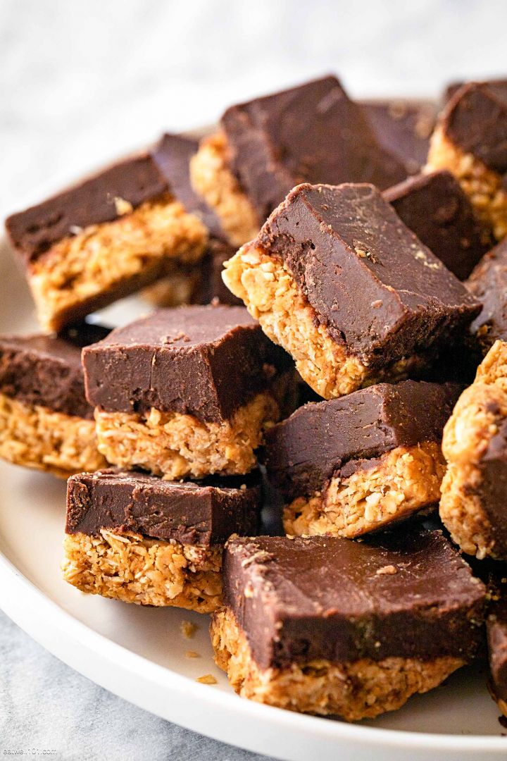 5. Sprinkle shredded coconut on top of the chocolate layer. Put back into the freezer for 1 to 2 hours to firm up. The longer the No-Bake Chocolate Coconut Bars chill, the cleaner and less crumbly the slices will be. Slice into bars using a serrated knife. Enjoy!