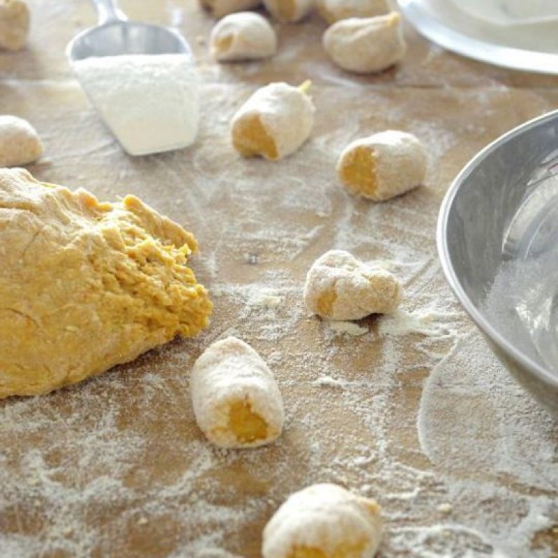 This surprising and subtle blend will delight even the most skeptical minds. Gnocchi are a kind of easy-to-make Italian dumplings usually made of cooked potatoes, flour, and sometimes an egg. The gnocchi are boiled and served with a sauce. For this recipe we will use pumpkin instead of potatoes. Then we will make the sauce with sage leaves infused in melted butter.