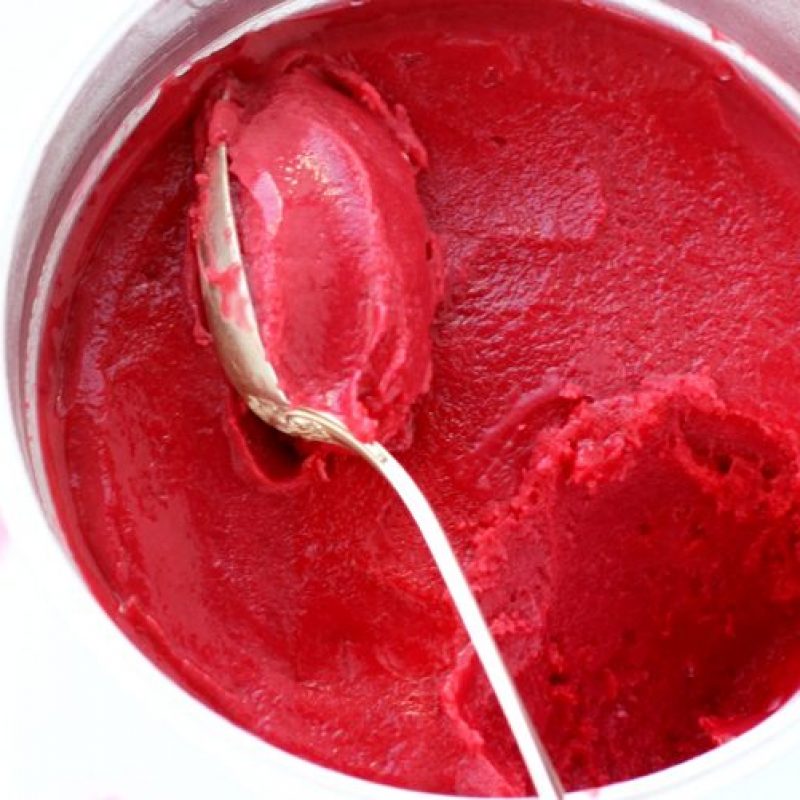 Make a syrup with sugar, lemon juice and water. Add raspberries, mix, filter, cool and then make it catch in your ice cream maker. Churn until you get the consistency of ice cream. Book in freezer until ready to serve with the shortbread cookies recipe you’ll find here.