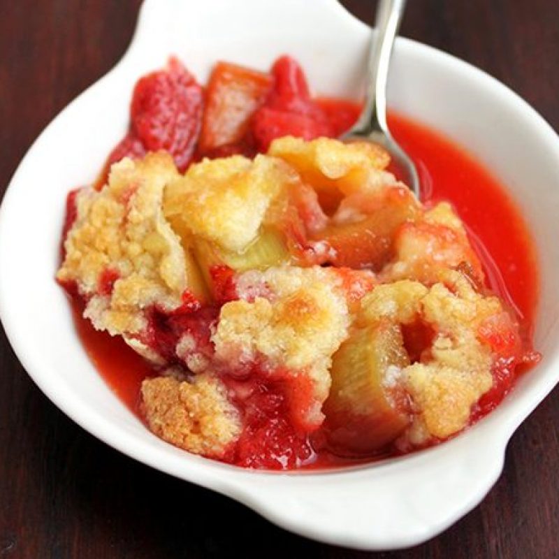 Rhubarb and strawberry crumble Here’s a very simple and tasty dessert. Crumble is quick and always appreciated for an express dessert especially when the fruit season is in full swing.