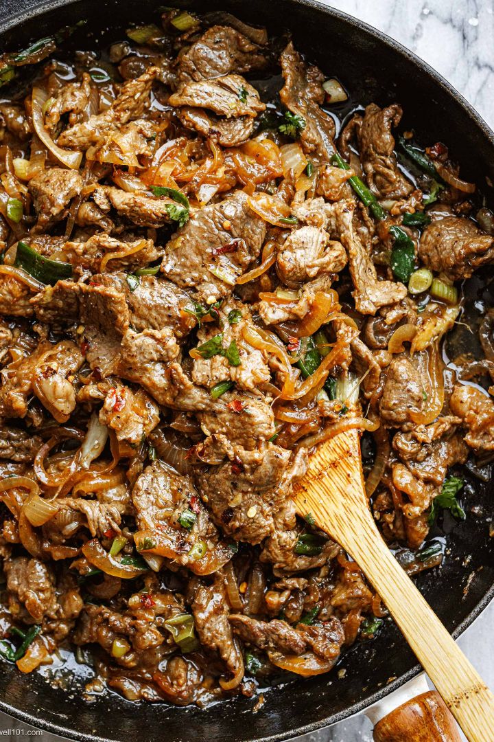 - 1.75 pounds (800g)of round steak, in 1-inch pieces