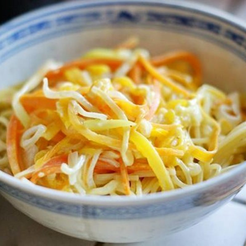 1. Peel the carrot and shallots and slice them into thin strips. Sauté over low heat in a pan with olive oil.