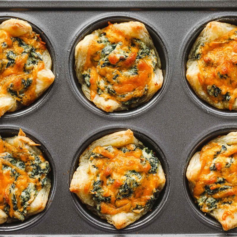 5. Remove the spinach dip bites from the muffin pan, transfer to a plate and serve the spinach dip puff bites warm. Enjoy!