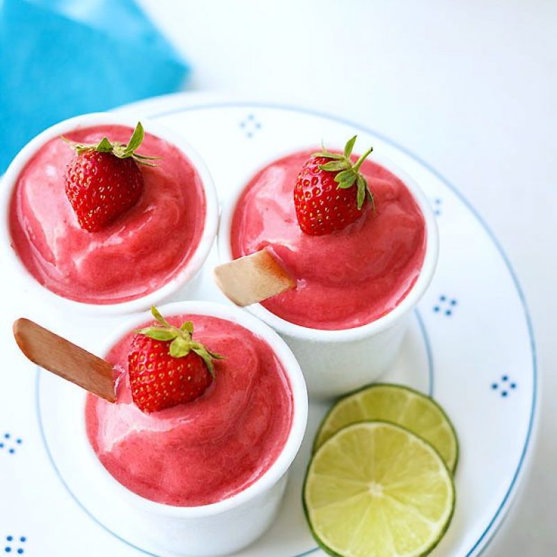 1. Add the frozen strawberries, honey, yogurt and lime juice to the bowl of a food processor. Process until smooth and creamy.