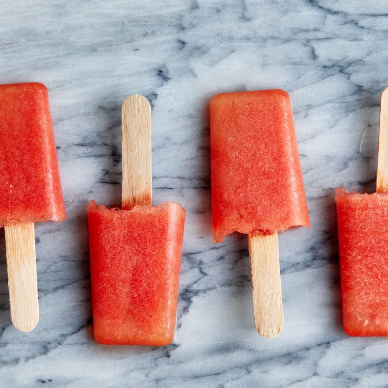 2. Divide the mixture among popsicle molds. Dip a popsicle stick right in the middle and freeze at least 4 hours, or until firm. Enjoy!