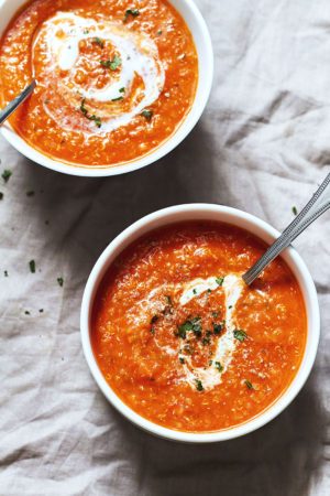 Creamy Sweet Potato Coconut Soup with Quinoa – Rich, healthy and satisfying, this pretty sweet potato soup with quinoa has all the nutrients you need to boost your energy and fortify your body. A complete dinner in one bowl!
