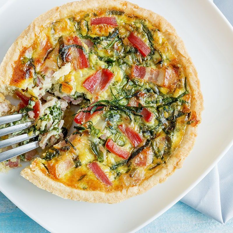 Quiche is a very flexible family dish that can be eaten for breakfast, lunch, or dinner and allow you to use whatever ingredients you have on hand. This quiche recipe is full of smoky bacon with swiss chard and creamy shredded cheese; it comes together quickly and would be ideal with a crisp green salad. You can make the crust in the morning or the day before and bake at the last minute to maximize your time.
